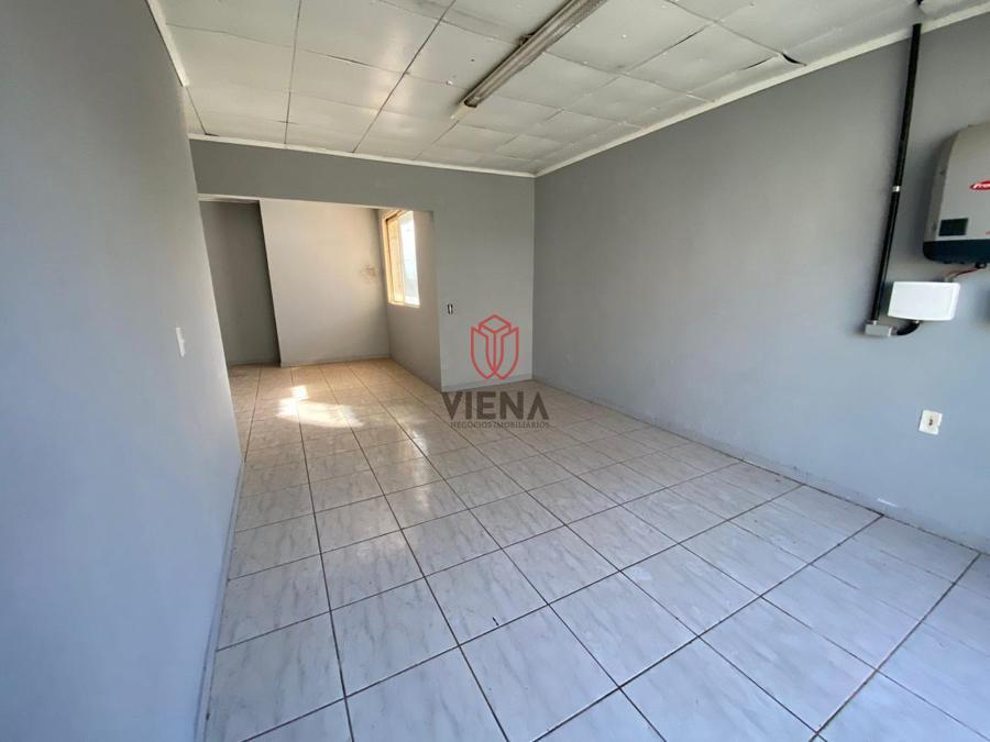 Uma sala grande com banheiro, com frente para rua do Comércio e para rua Pedro Schettert.