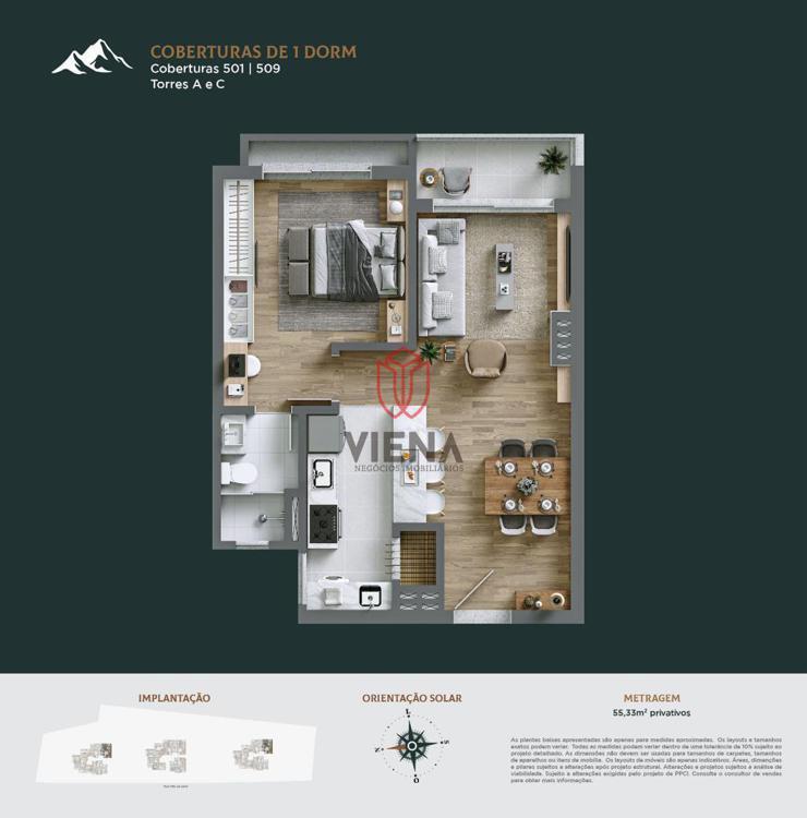 Apartamento de 1 dormitório em belo Condomínio, ideal para investimento e também para aproveitar os encantos de Canela e Gramado.