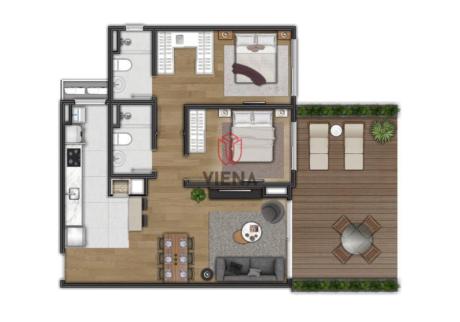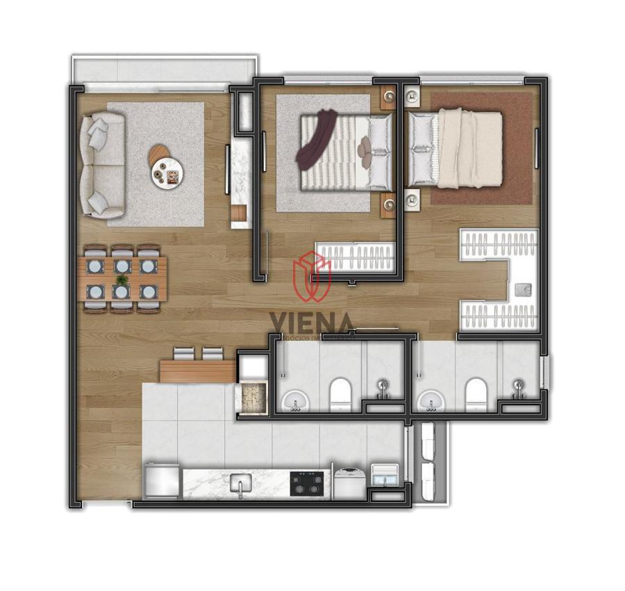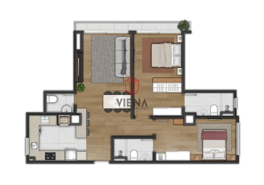 São 3 opções de planta, 1 suíte (a partir de 50m²), 2 suítes (a partir de 80m²) ou 2 dormitórios sendo 1 suíte (a partir de 70m²).