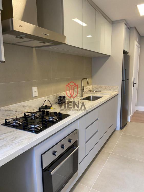 O apartamento oferece 2 suítes casal, com lavabo, cozinha montada com churrasqueira e sala totalmente mobiliado e com enxoval completo. A garagem fica no subsolo com elevador até o andar, carregamento para carro elétrico e lavanderia pay-per-use.