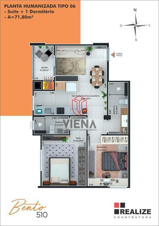 Aqui você vai encontrar tudo que a sua vida precisa. O Bento 510 conta com 2 elevadores, apartamento com 1 suíte +1 dormitório, sala com dois ambientes, cozinha, lavanderia, banheiro social, sacada com churrasqueira, com alto padrão de acabamento e duas vagas de garagem.