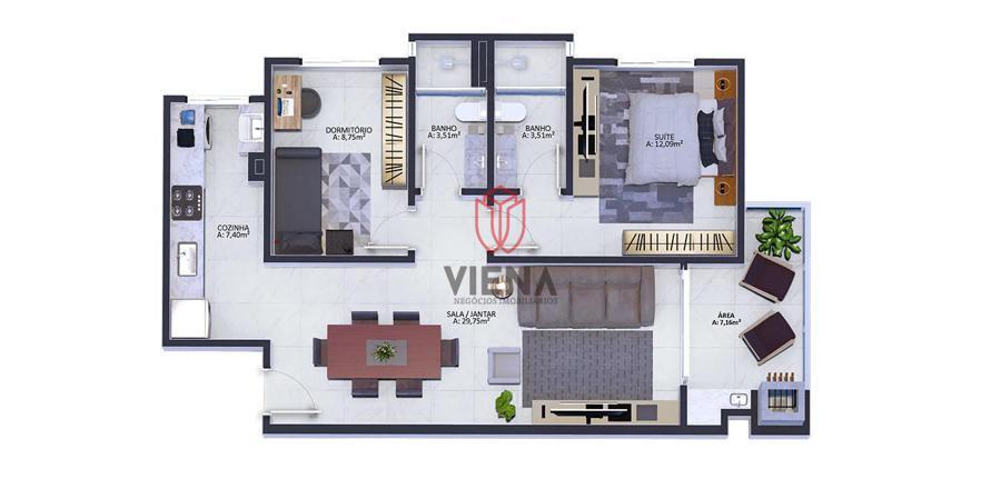 Excelente apartamento com 2 dormitórios sendo uma suíte, sala com 2 ambientes, cozinha e sacada com churrasqueira. Contemplados com uma linda área de lazer externa.