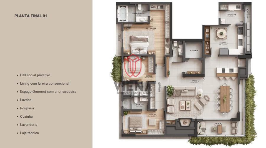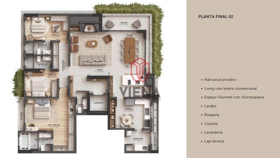 Infraestrutura de lazer: 2.250 m² (3° e 30° pavimento)