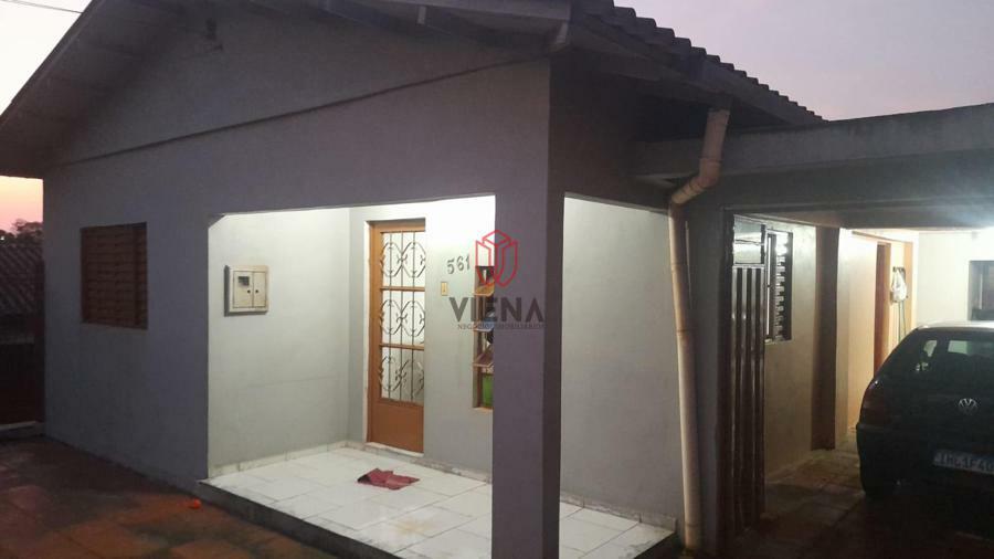 Casa de Alvenaria com dois dormitórios, sala, cozinha, garagem com amplo espaço para churrasco.