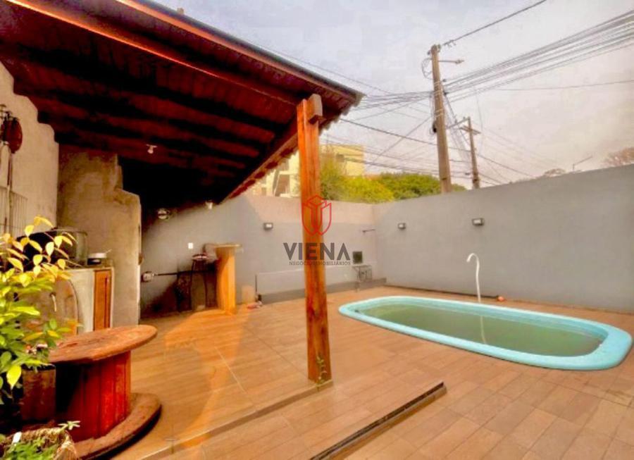 Linda casa de alvenaria localizada no bairro São Geraldo, possui dois dormitórios, sendo uma suíte, banheiro social, sala estar e jantar, escritório, cozinha toda revestida, garagem pra um carro, quiosque com churrasqueira e piscina, pátio todo fechado.