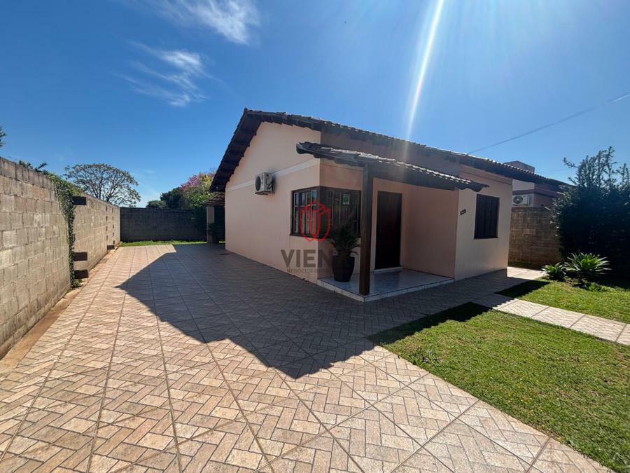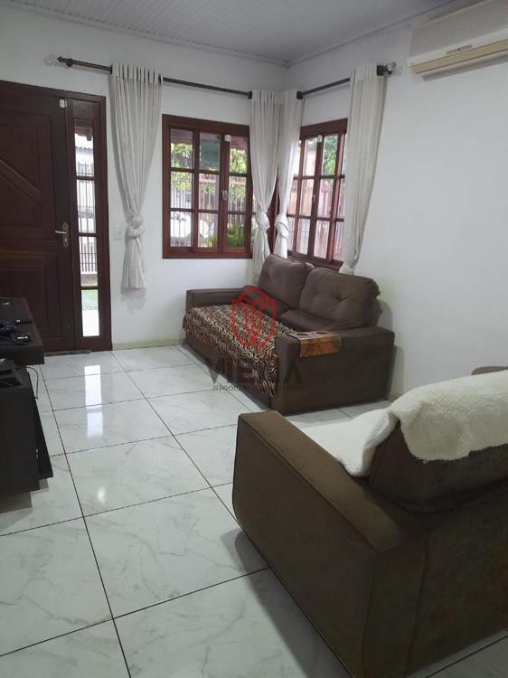 Casa de alvenaria pra venda, possui dois dormitórios, sala, cozinha, banheiro social, lavanderia, pátio frente e fundos todo fechado com muros e grades.