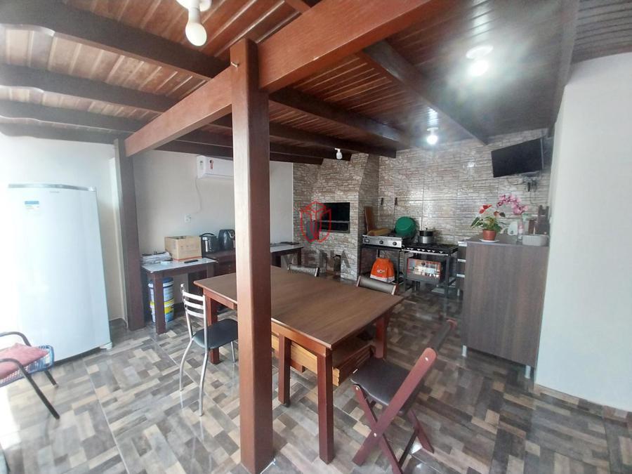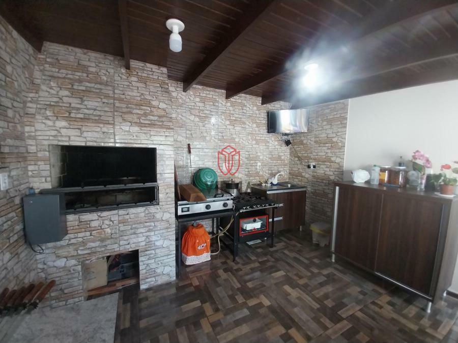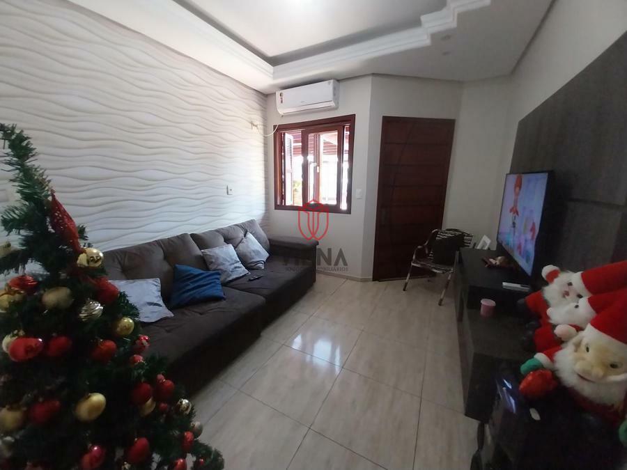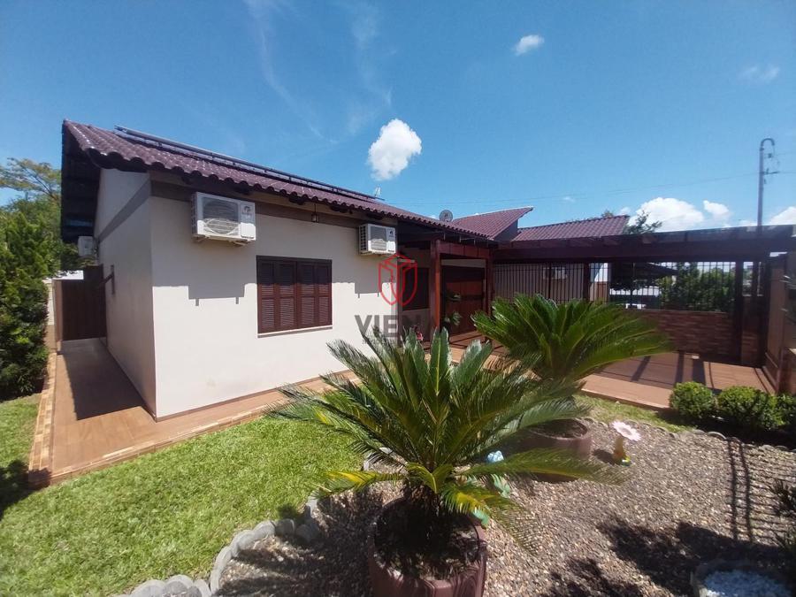 Vende se excelente casa de alvenaria com laje e estrutura pra segundo pavimento, possui quiosque com piscina aquecida, churrasqueira, dois dormitórios, sala estar e jantar, cozinha com moveis sob medida, banheiro social, lavabo, pátio frente e fundos todo murado e com grades, espaço pra dois carros.