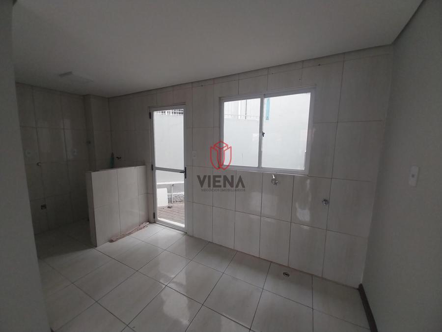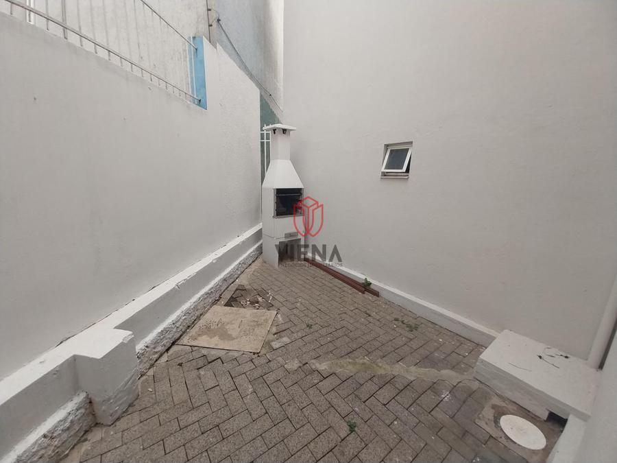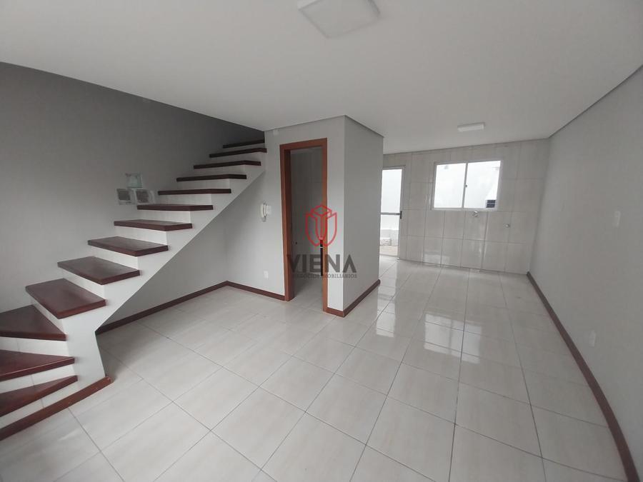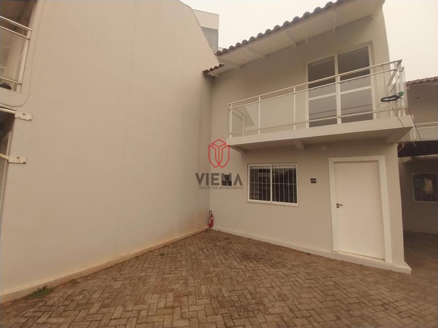 Na parte inferior temos sala, cozinha, lavanderia, lavabo e um pequeno pátio nos fundos. Na parte superior banheiro social e dois dormitórios.