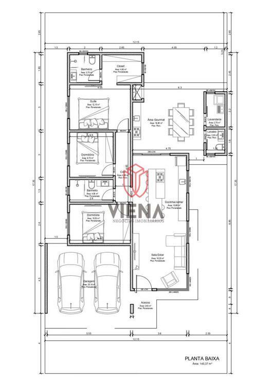 Área construída de 145,37 metros quadrados. Isso significa que ela oferece um espaço confortável para os moradores, com cômodos bem distribuídos.