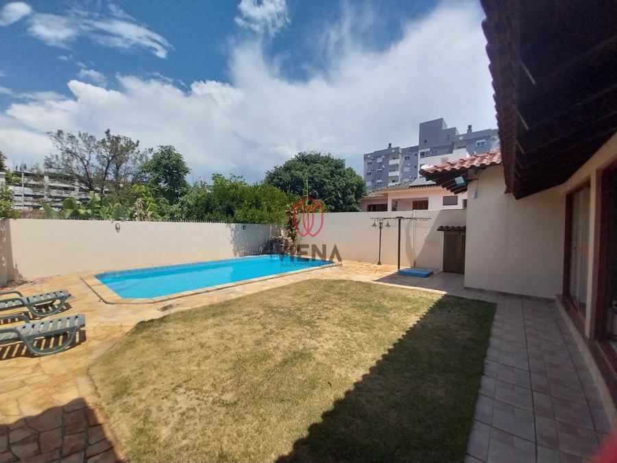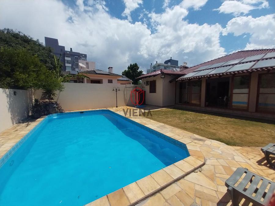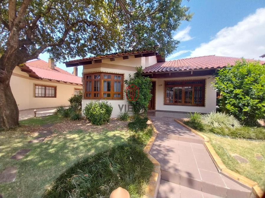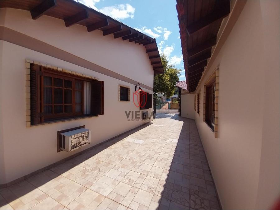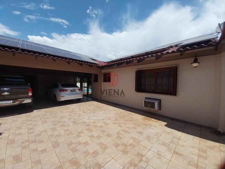 Ampla casa de alvenaria com laje, acabamentos em gesso, aberturas de madeira (ipê), aberturas de alumínio e vidros a casa possui três dormitórios sendo uma suíte com closet e hidro, sala estar com lareira, sala jantar, sala televisão, escritório, cozinha com moveis planejados, banheiro social, lavanderia com moveis, espaço gourmert, duas churrasqueira, sala comercial, salão de festa, piscina com aquecimento medindo 8mx 4m, pátio frente e fundos todo fechado com muros e grades.