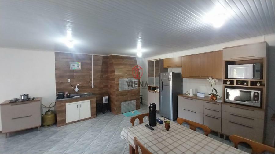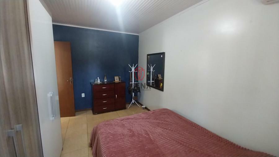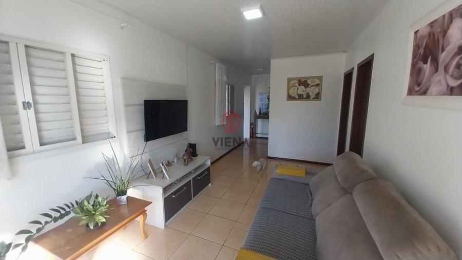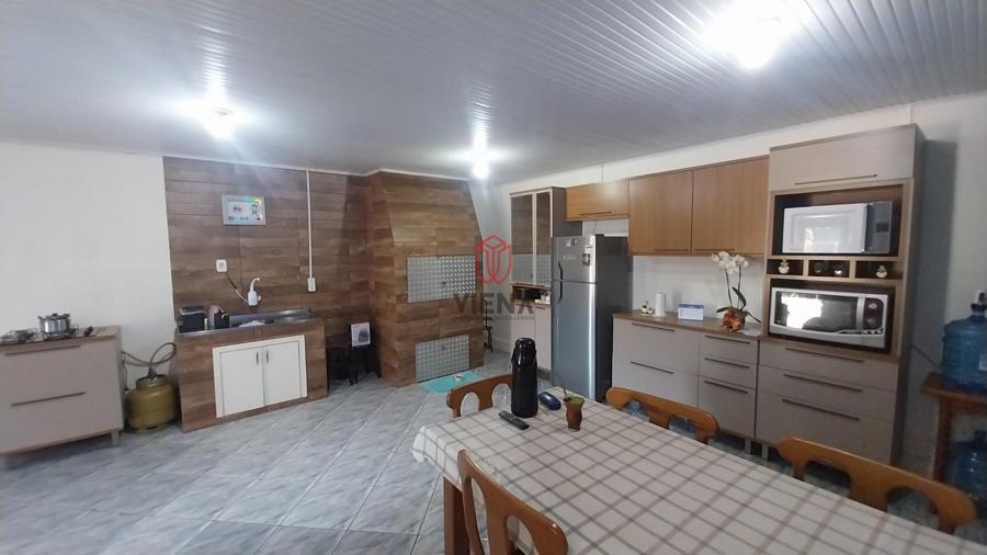 Casa de alvenaria possui três dormitórios, sala estar, cozinha, dois banheiros, cozinha com moveis planejados, churrasqueira, lavanderia, pátio frente e fundos todo fechado, portão eletrônico.