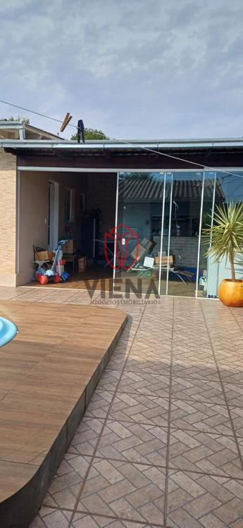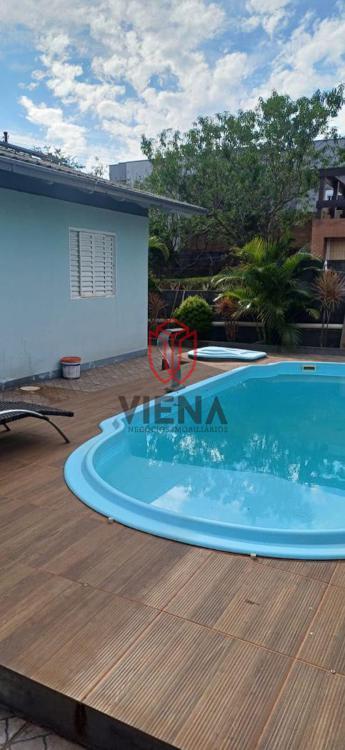 Casa da frente possui três dormitórios, sala, cozinha com moveis planejados, banheiro social, lavanderia, pátio frente e fundos com piscina e churrasqueira.