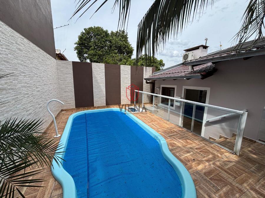 Casa de alvenaria pra venda, localizada no bairro pindorama, próximo ao posto de saúde, possui três dormitórios, sendo uma suíte, sala estar com lareira, escritório, banheiro social, lavanderia, garagem pra dois carros fechada, quiosque com churrasqueira, fogão campeiro, lavabo, piscina com aquecimento, pátio frente e fundos todo fechado.