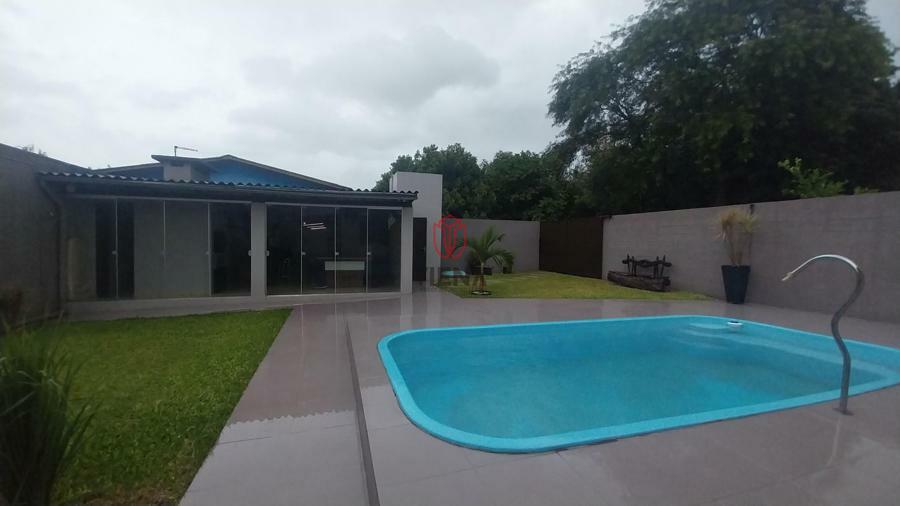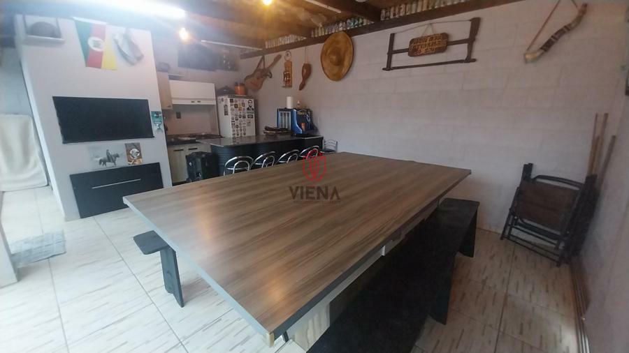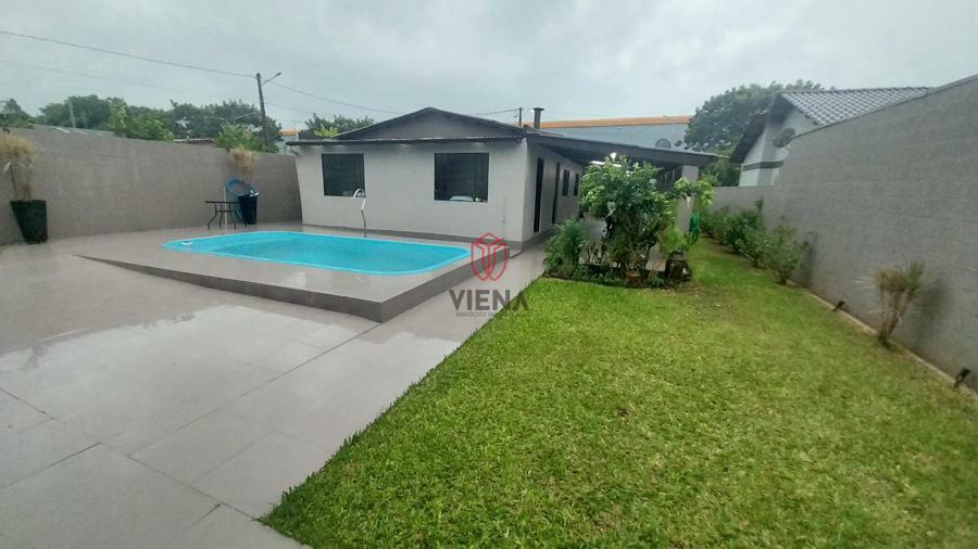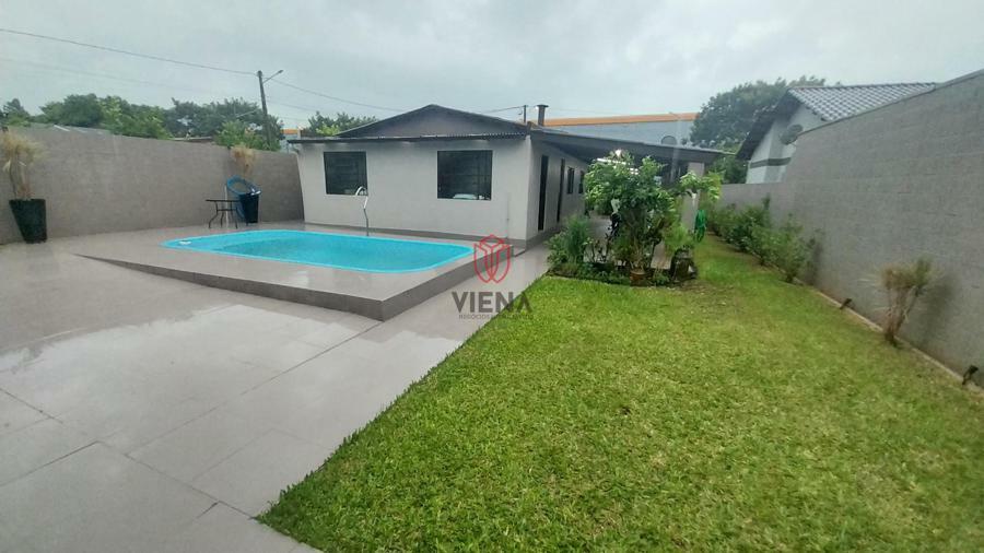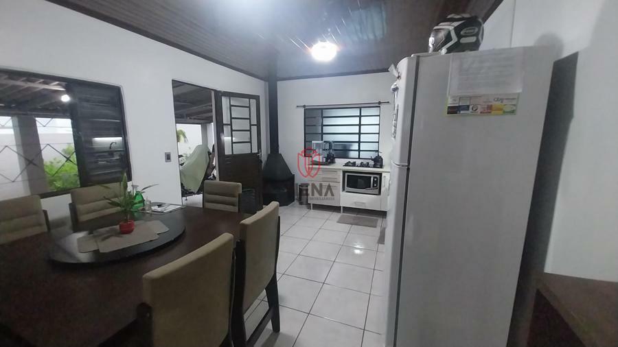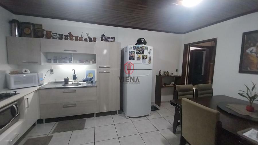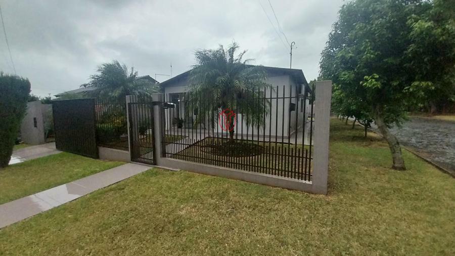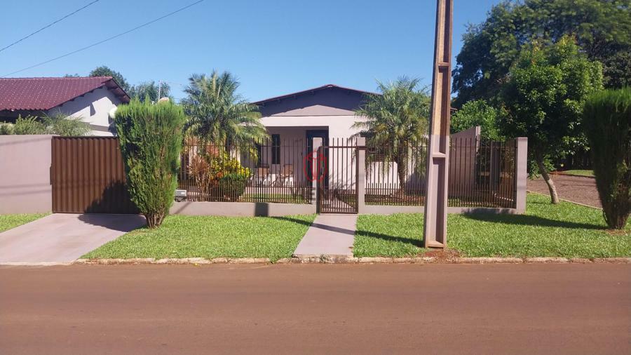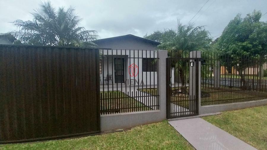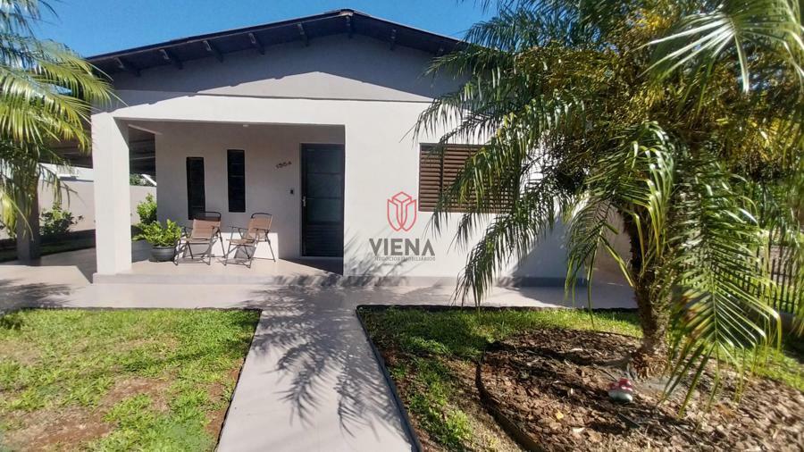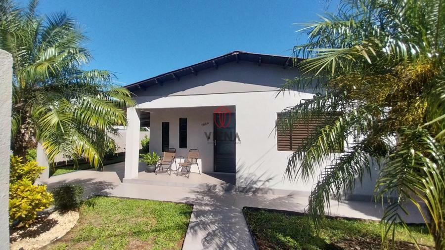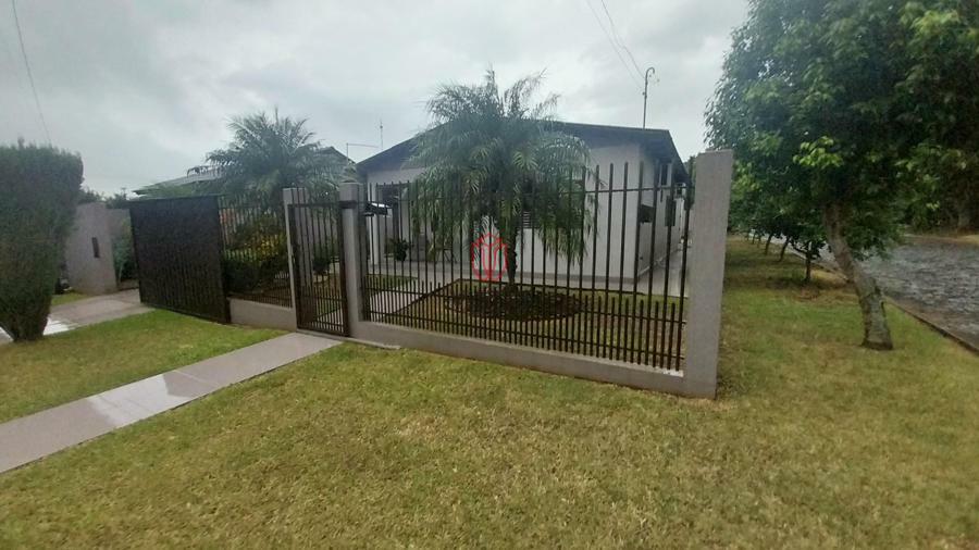 Vende se linda casa de alvenaria, possui três dormitórios, sala estar, cozinha fechada, laleira, lavanderia, quiosque com churrasqueira, pátio todo murado e com grades.