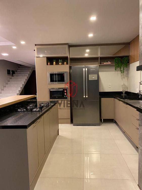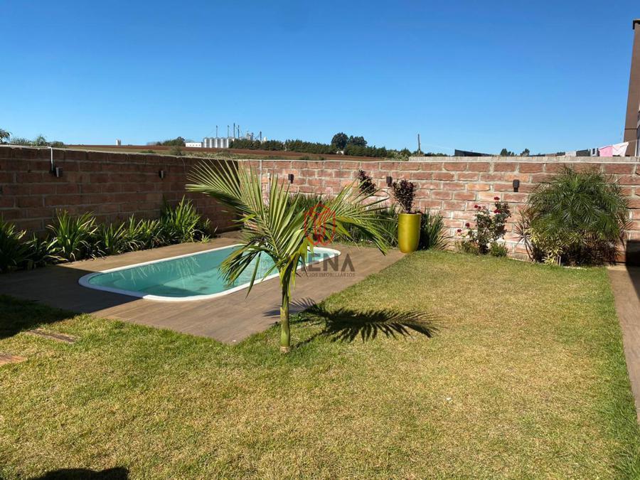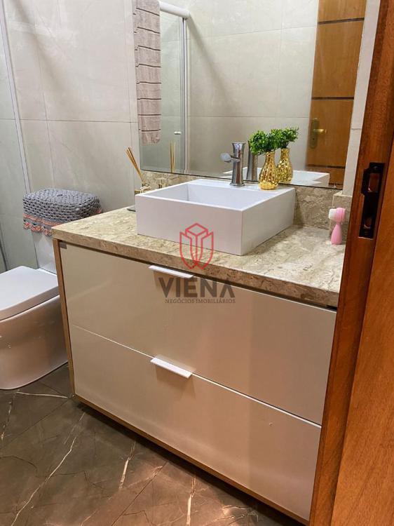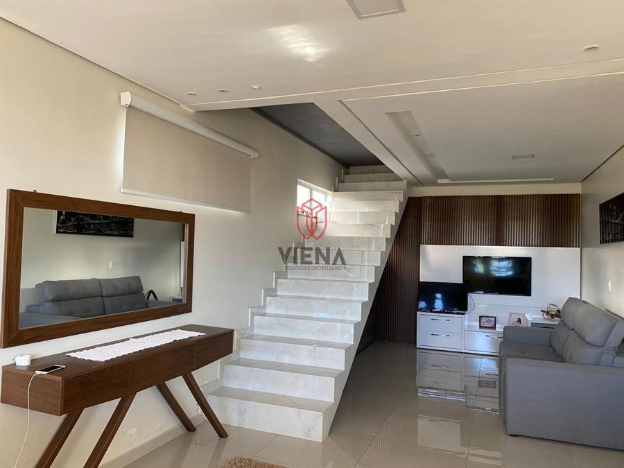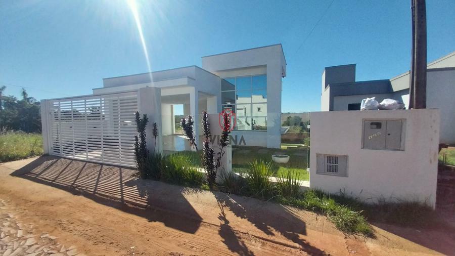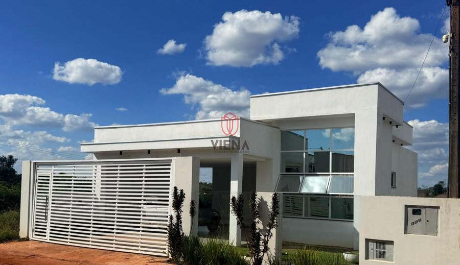 Linda casa com dois pavimentos pra venda localizada no bairro Novo Leste, possui três dormitórios sendo duas suítes, sala estar e jantar, cozinha com moveis planejados, lavanderia, espaço gourmet com churrasqueira, banheiro social, garagem pra dois carros coberta, piscina, pátio todo fechado com muros e grades.