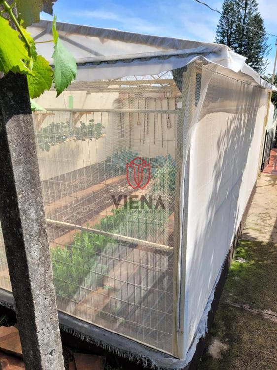 - Pátio frontal com bela jardinagem e pátio nos fundos amplo, muito arborizado, com parreiral, horta, estufa com irrigação da água da chuva (através de cisterna acoplada as calhas do telhado da edícula). A casa possui duas caixas de água de 500 L, o sistema de esgoto e de drenagem da chuva é conectado à rede municipal por onde são escoados.