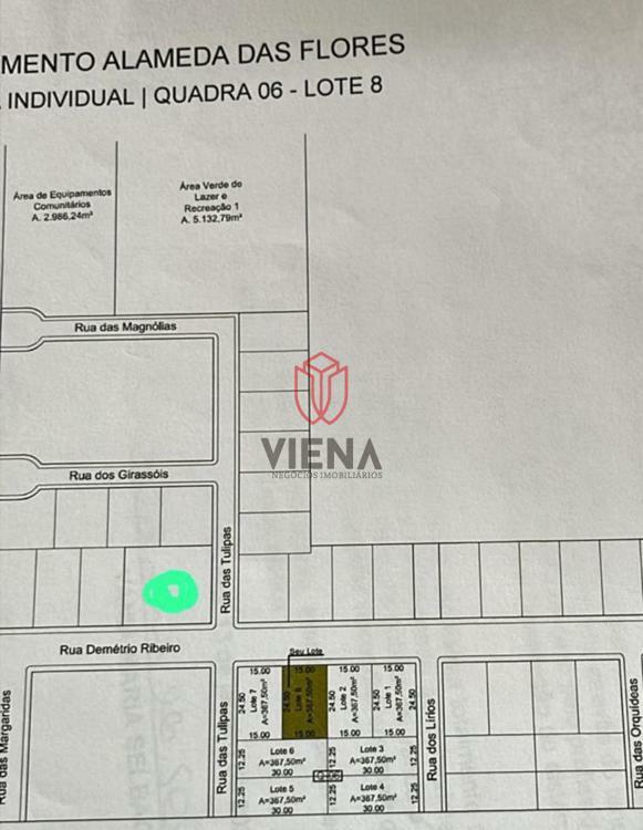 Área Total do Terreno 367,50m² : 15,00m de largura X 24,50m de comprimento.